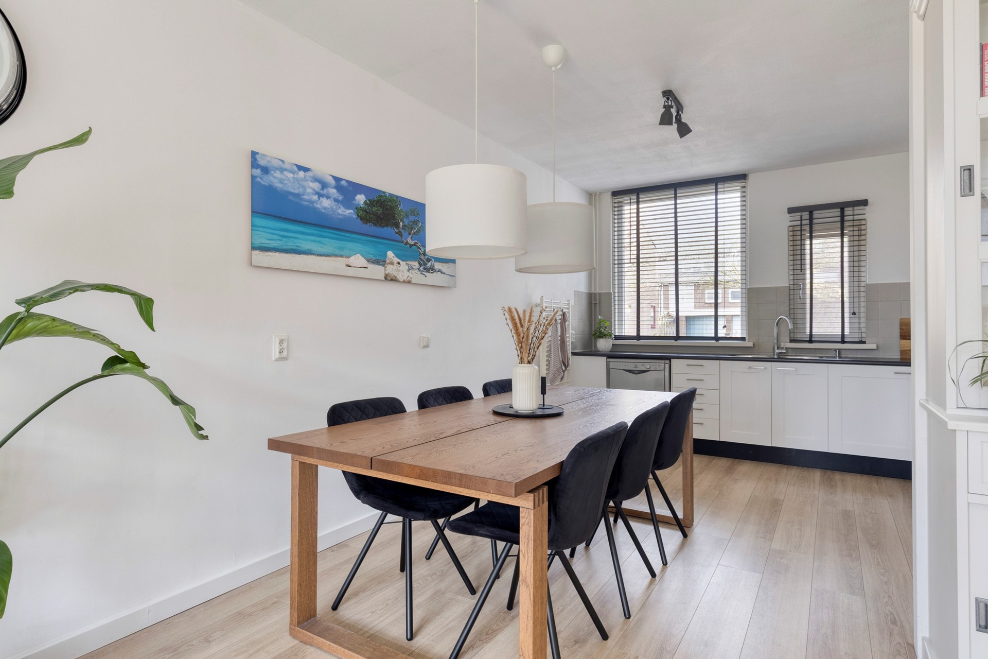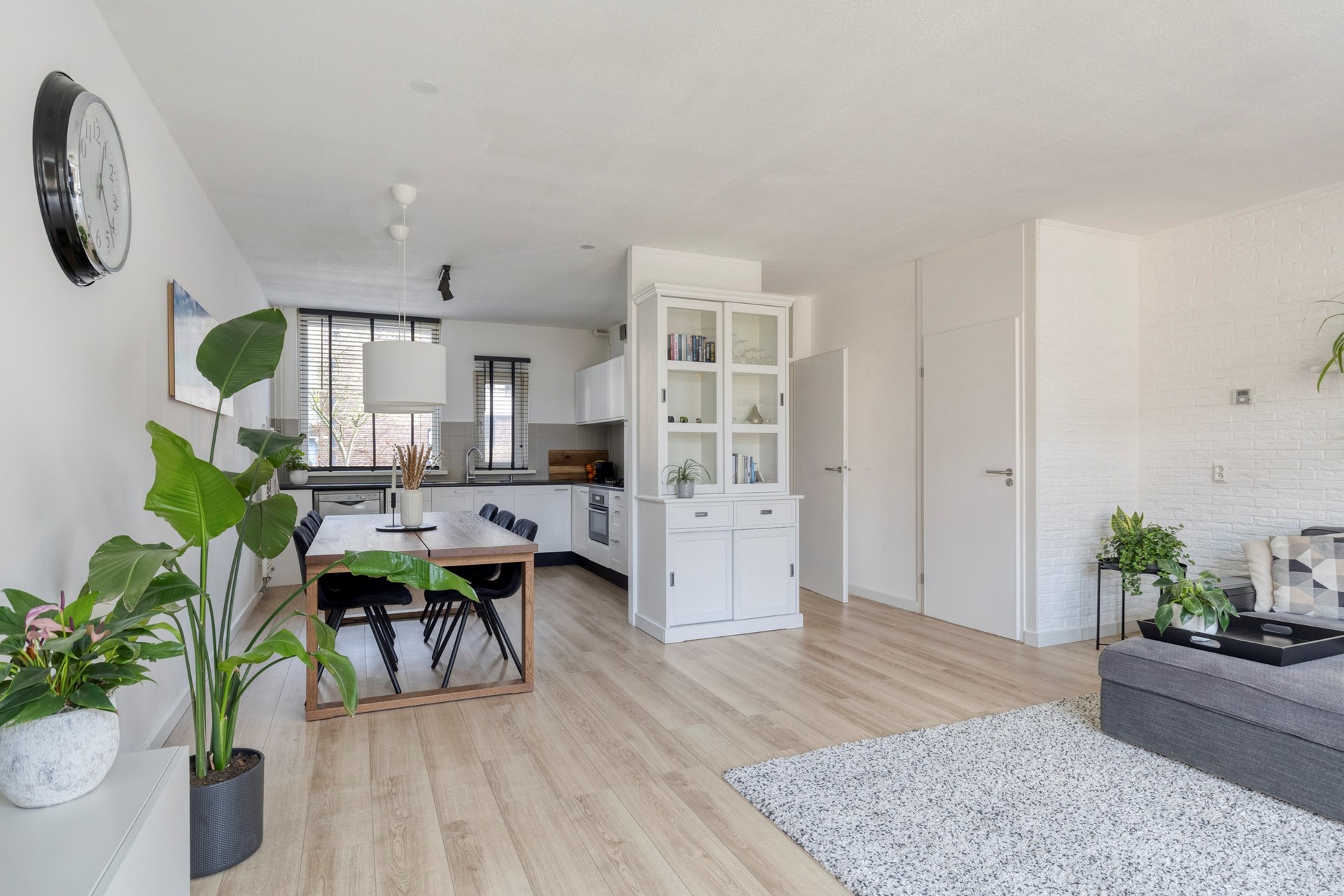 Hal, meterkast, net maar standaard toilet met fonteintje. Zonnige tuingerichte woonkamer van 28 m² met trapkast en openslaande deuren naar de tuin toe. Open keuken met L-vormige inbouwkeuken welke voorzien is van diverse inbouwapparatuur. Te weten: - Koel-/vriescombinatie. - Vaatwasser - 4 pits gasstel en afzuigkap. Begane grond met licht eiken laminaatvloer.