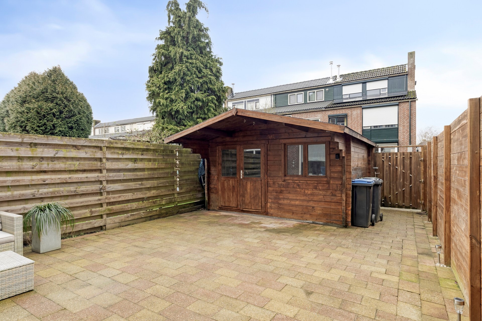 De zonnige en verzorgde achtertuin met achterom is op het Westen gelegen.