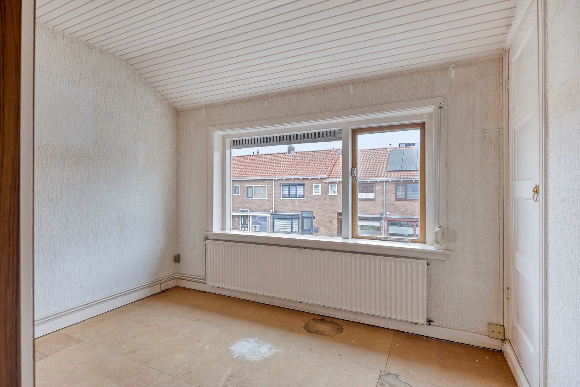Entree met hal, trapopgang en toilet. De lichte woonkamer heeft aan de voorzijde een sfeervolle erker en wordt breder in het midden van de woning, wat zorgt voor een ruimtelijk gevoel. Aan de achterzijde bevindt zich de uitbouw met de keuken. Ook de badkamer bevindt zich op de begane grond.