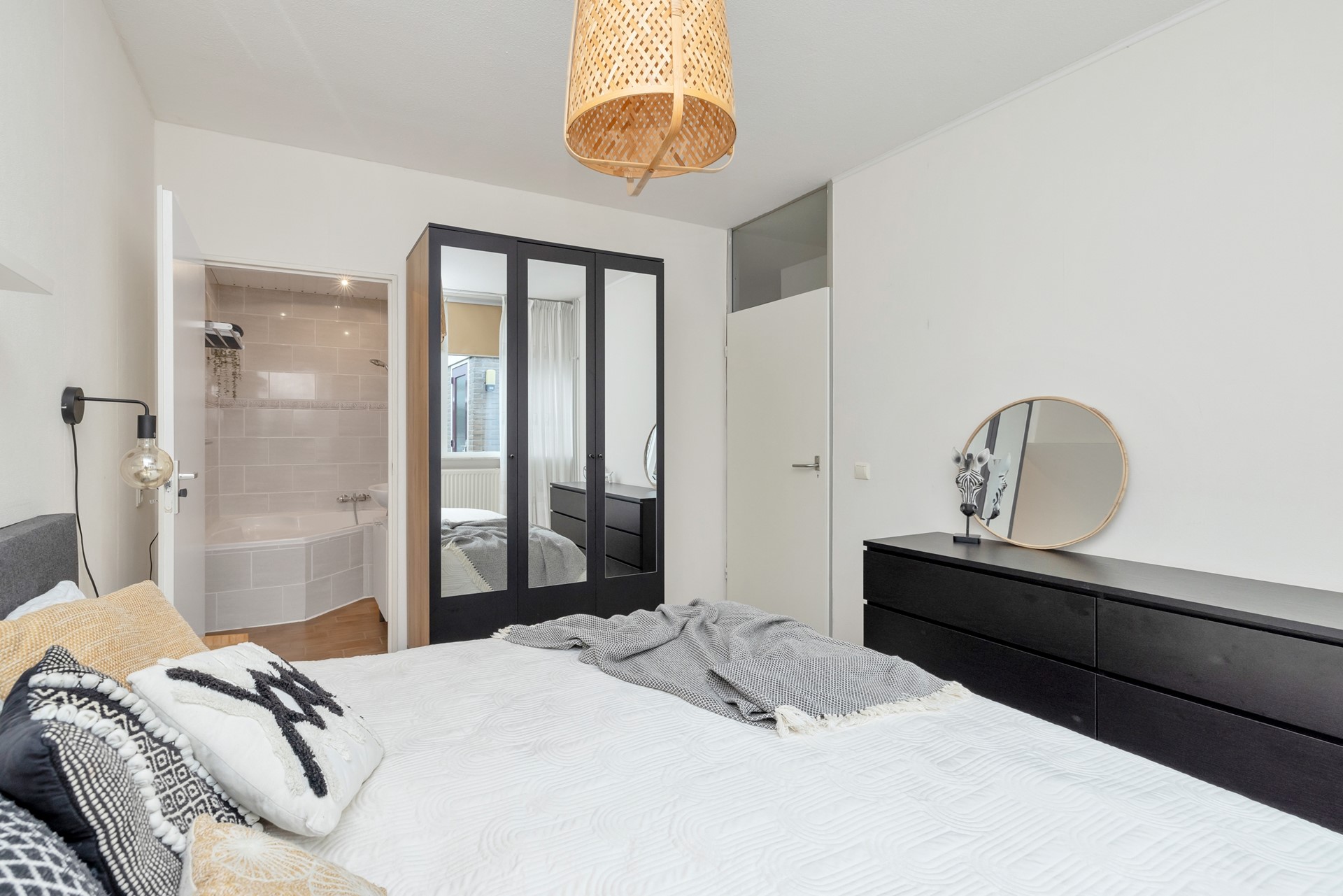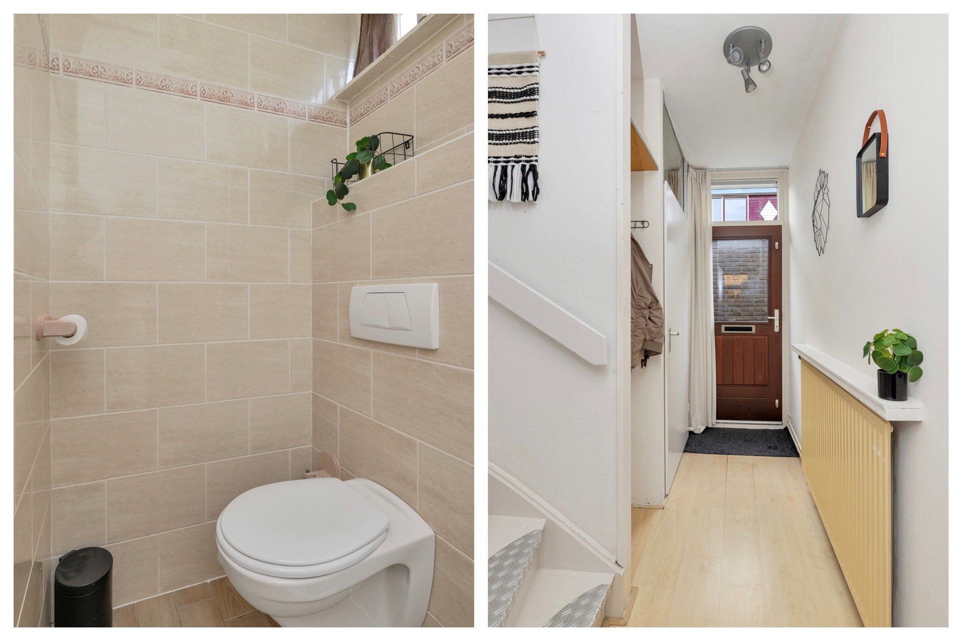 Je komt binnen in de hal met garderobe, meterkast, toilet en trapopgang naar de eerste verdieping. Vanuit de hal bereik je de slaapkamer op de begane grond en de aangrenzende badkamer. De badkamer is uitgerust met een ruime douche met bad, een wastafelmeubel met spiegelkast.