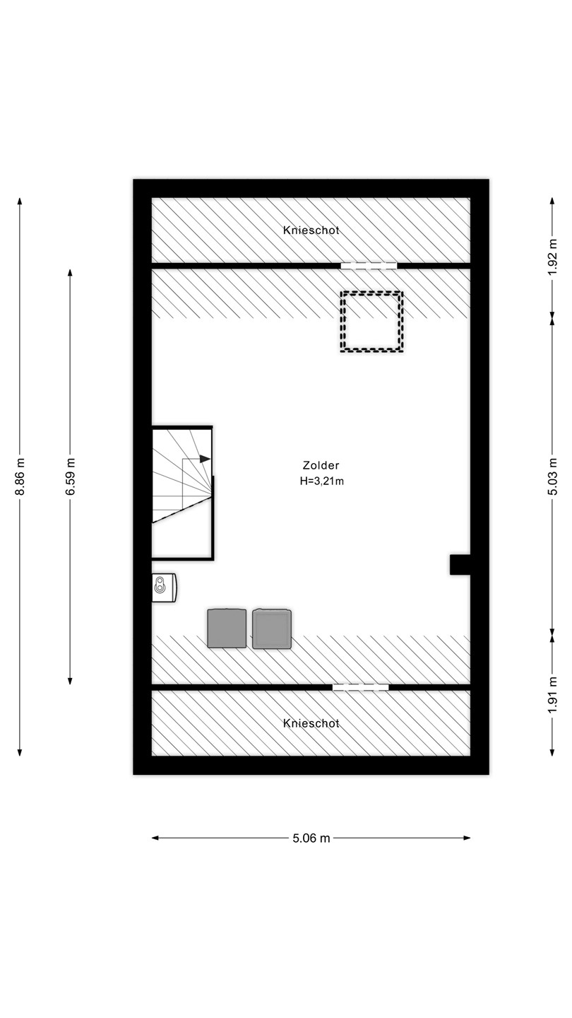 Vaste trap naar een ruime zolder met dakraam, waar eenvoudig een vierde slaapkamer kan worden gerealiseerd. Hier bevinden zich tevens de cv-ketel, zonneboiler, warmte terugwin unit en de wasmachineaansluiting.