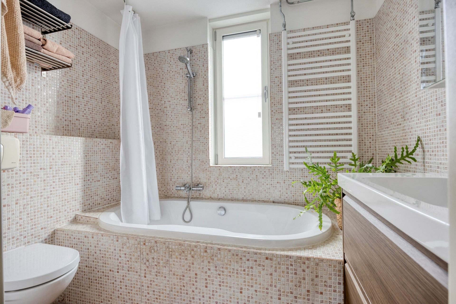 Overloop, 3 ruime slaapkamers, waarbij de 2 op de achterzijde gelegen slaapkamers beschikken over een in 2021 gerenoveerde dakkapel met in 2025 vernieuwd bitumen dak. De badkamer is voorzien van een bad, douche, 2e toilet, nieuw badkamer-meubel en design-radiator.