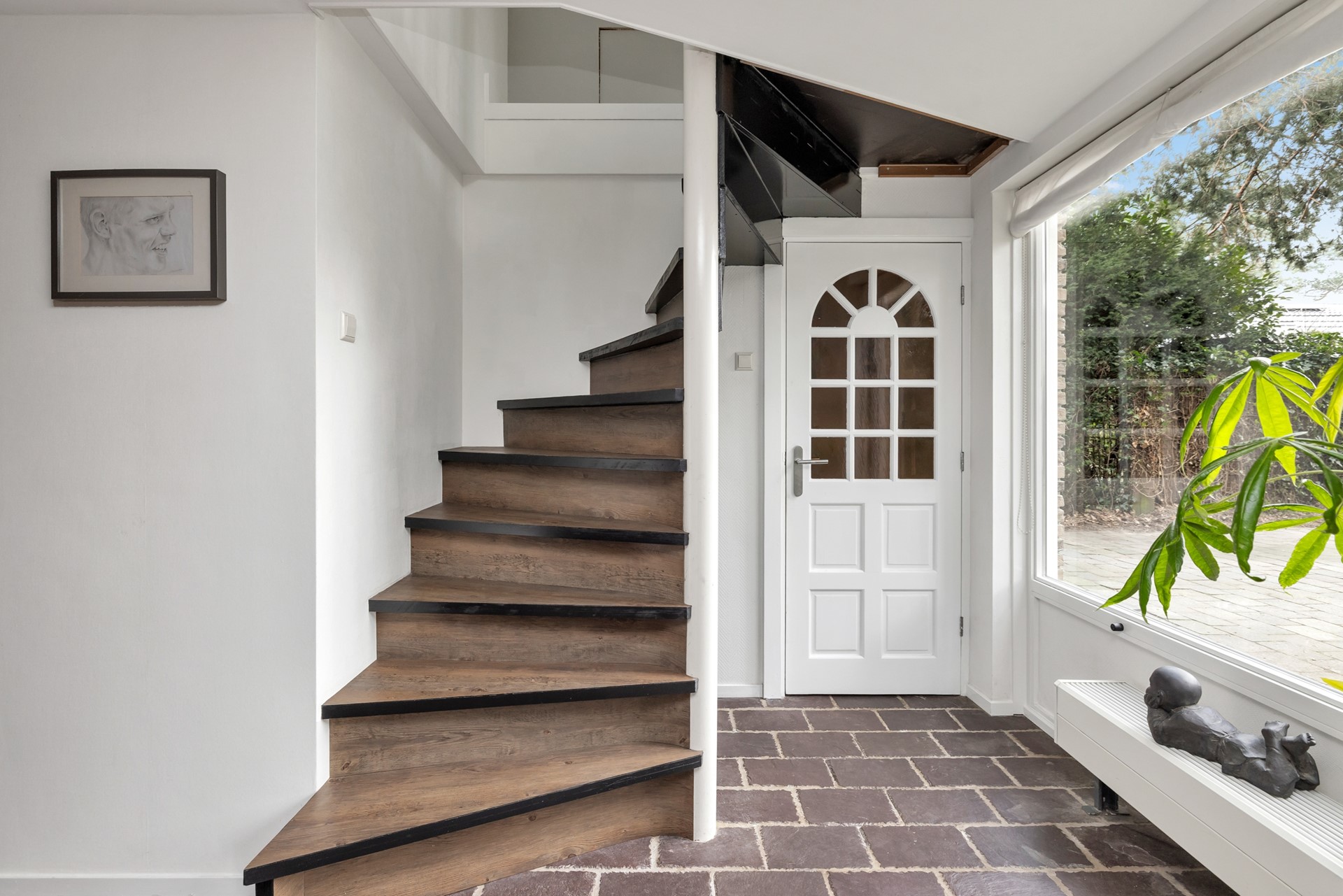 Begane grond Eigen parkeerplaats voor twee auto's. Entree met hal, meterkast, toilet, bijkeuken en slaapkamer. Lichte woonkamer met houten vloer, grote raampartijen en schuifpui naar de tuin. Open keuken in lichte uitvoering met voldoende werk- en bergruimte en complete apparatuur. Ruime slaapkamer, ideaal voor gelijkvloers wonen. Bijkeuken met wasmachineaansluiting, cv-ketel en trap naar boven.